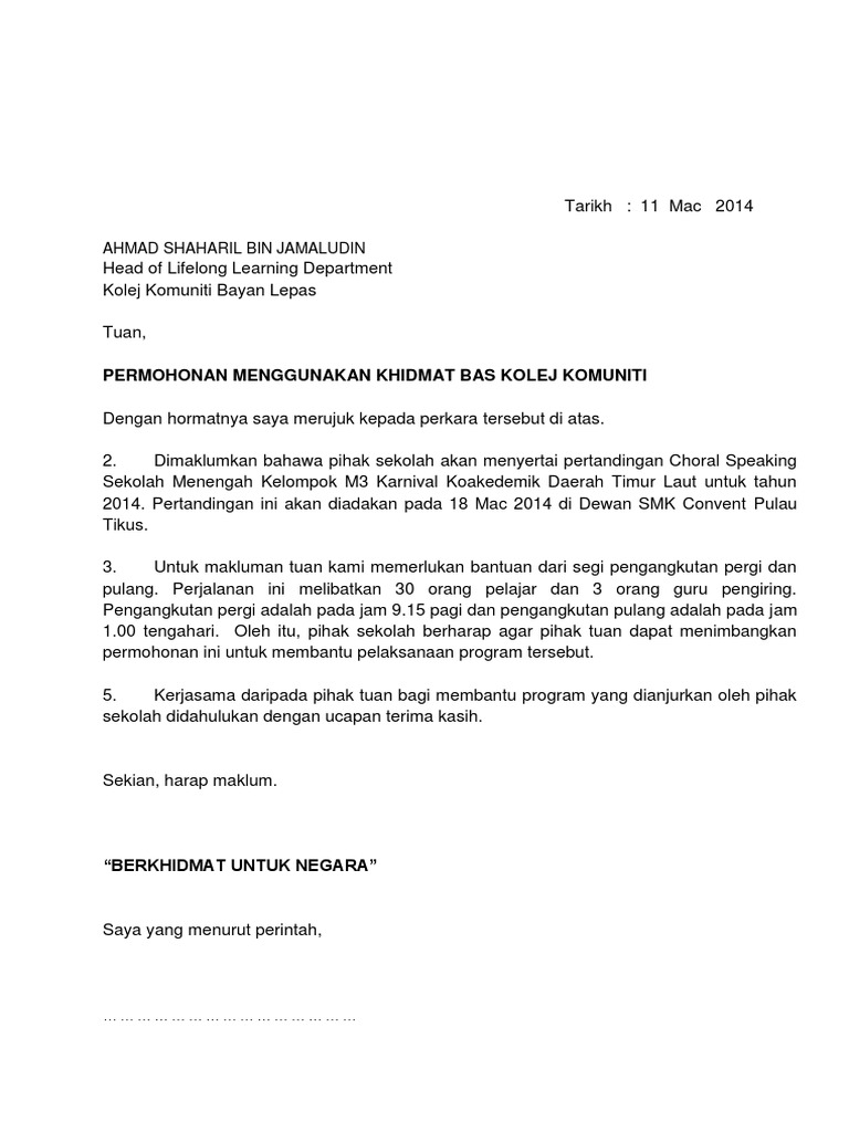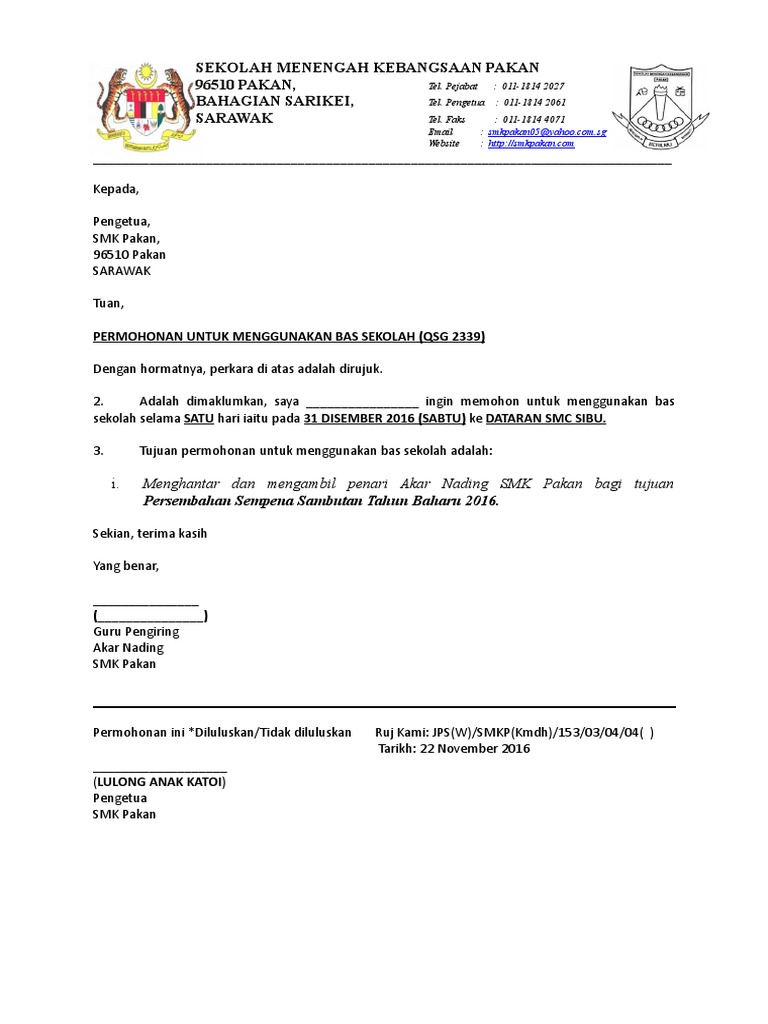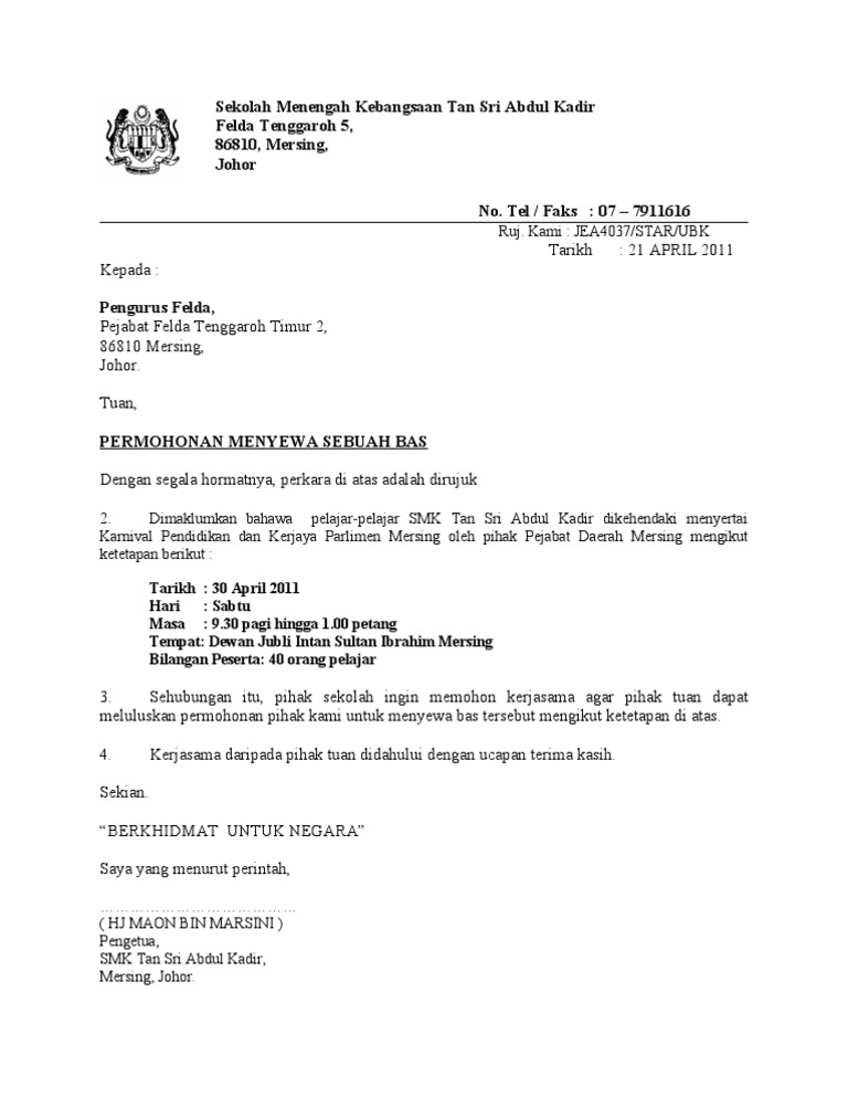 Contoh Surat Memohon Menggunakan Bas Sekolah Pdf